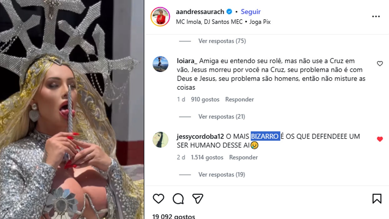 Andressa Urach se fantasia de Maria Madalena e é criticada: ‘BIZARRO ‘