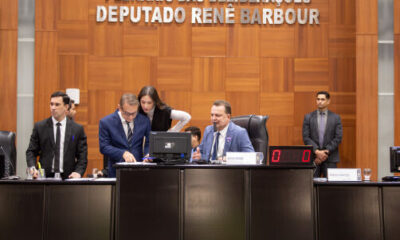 Foto: ANGELO VARELA / ALMT O anúncio feito pelo Governo do Estado, nesta quarta-feira (11), no Palácio Paiaguás, sobre a requisição definitiva do prédio da Santa...