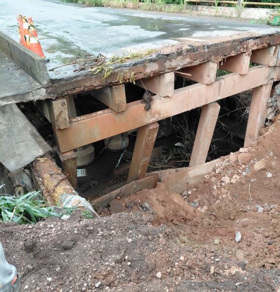 A ponte sobre o Córrego Fundo, interditada na tarde de quarta-feira (4), entre os bairros Boa Esperança e Santa Cruz, será demolida, porque toda a estrutura...